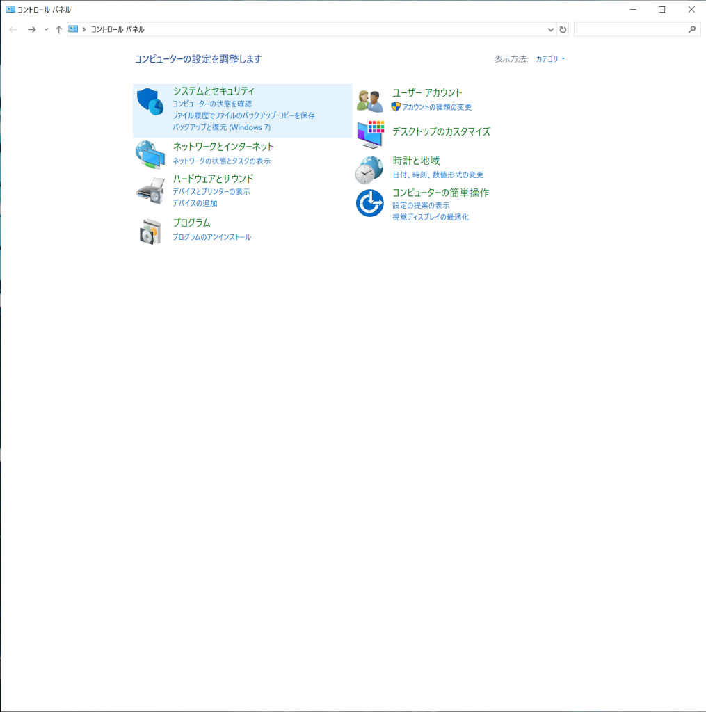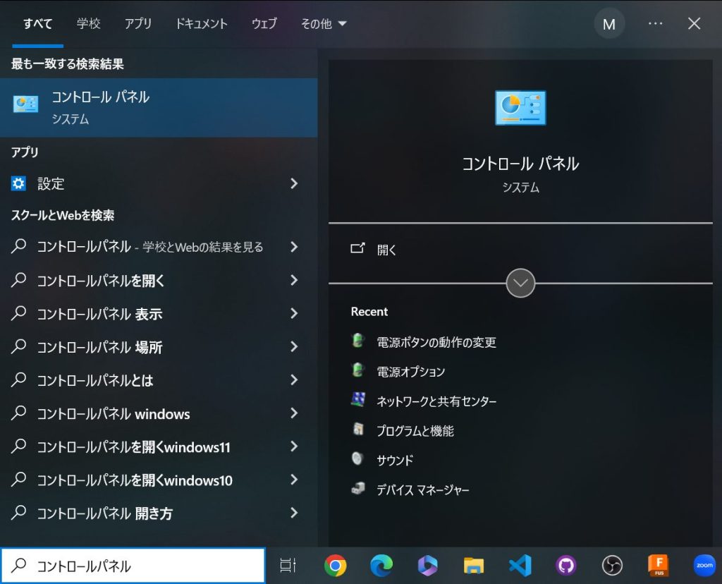 1. コントロールパネルを開きます。